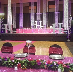 We rent pipe and drape, State of the art LED Up-lights, arches, custom centerpieces, linens, dream sequin linens, chiavari chairs and more. We strive to create custom decor to fit your personal style and want to give you and your guests a memorable experience.